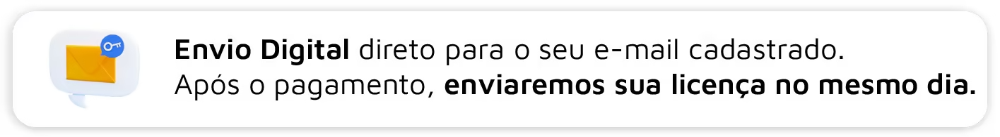 - Formato: Receba por e-mail a chave de ativação e o link para download oficial.